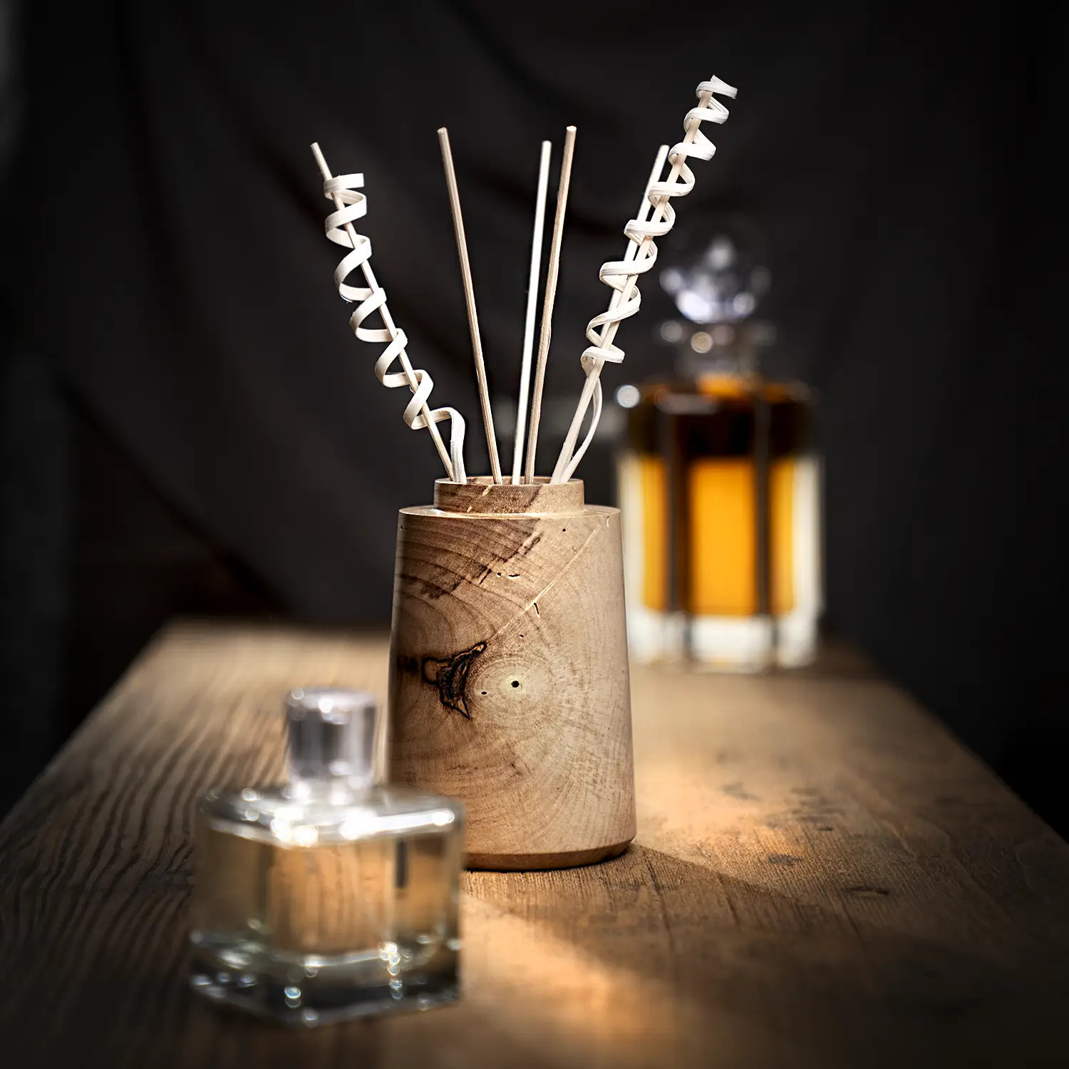 Do dna těla difuzéru je umístěna skleněná nádobka, ze které dřevěné tyčinky "pijí" a do okolí rozptylují tvou oblíbenou vůni - santal, levanduli, bílý jasmín, lesní jahody,... cokoliv si přeješ. Tiše, bezpečně, přírodně - bez elektřiny a bez otevřeného ohně.