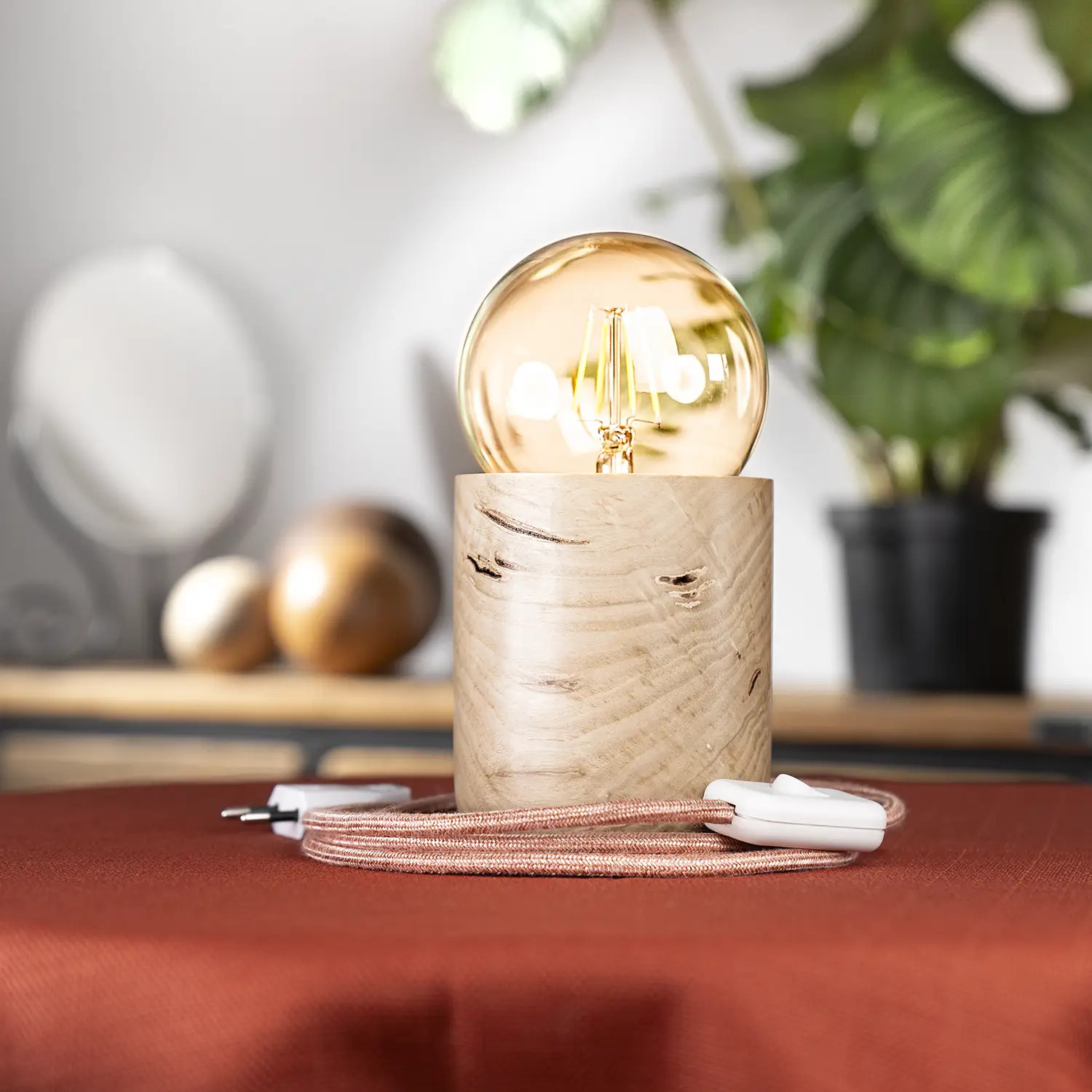 Designová LED žárovka vyzařuje měkké, teplé světlo, odrážející se od světlého habrového těla. Moderní opletený kabel v barvě bronzu koresponduje s barevnými tóny vyzařovaného světla, ...a nešlo jinak, než Jasmínu ozdobit bílými doplňky - vypínačem a zásuvkovou vidlicí.