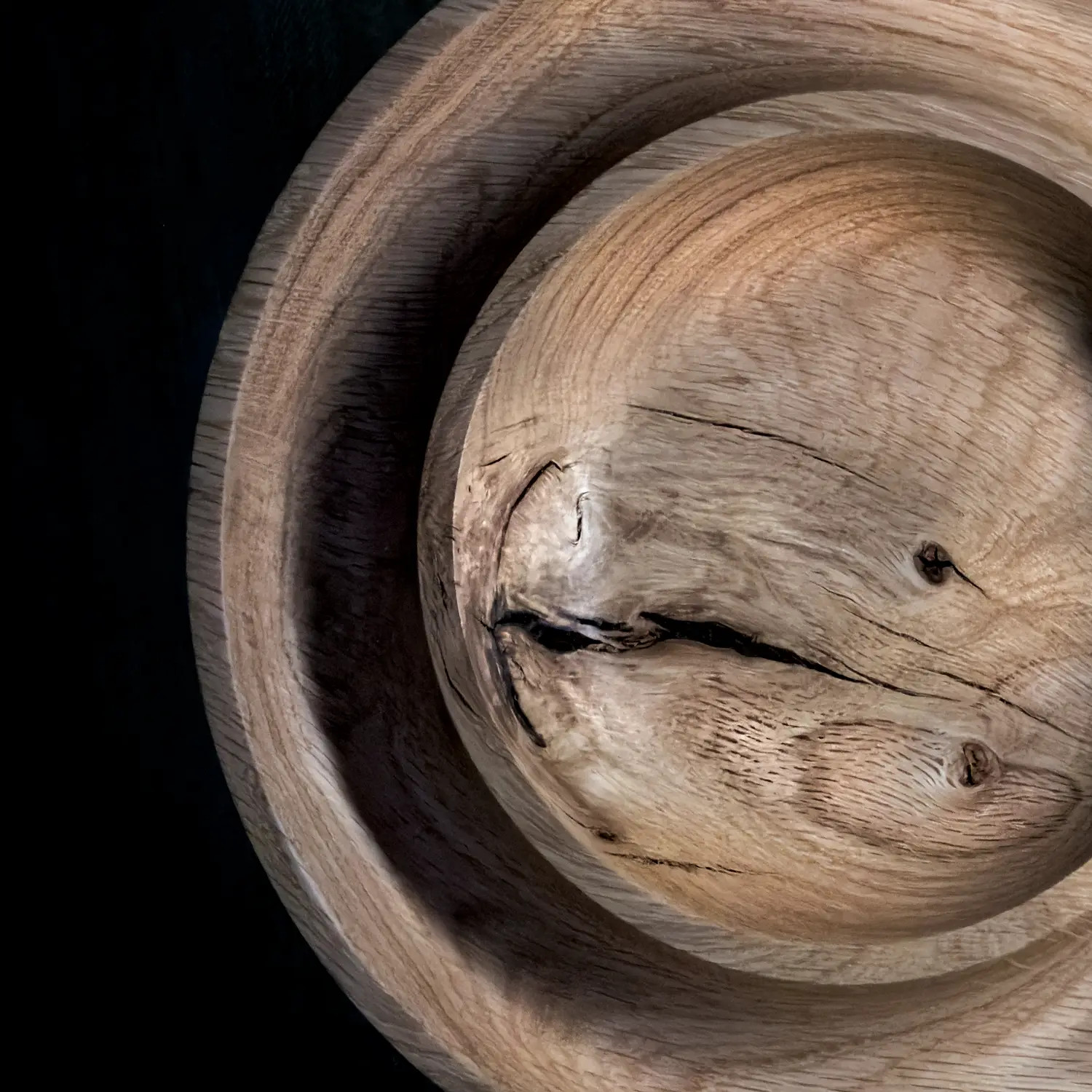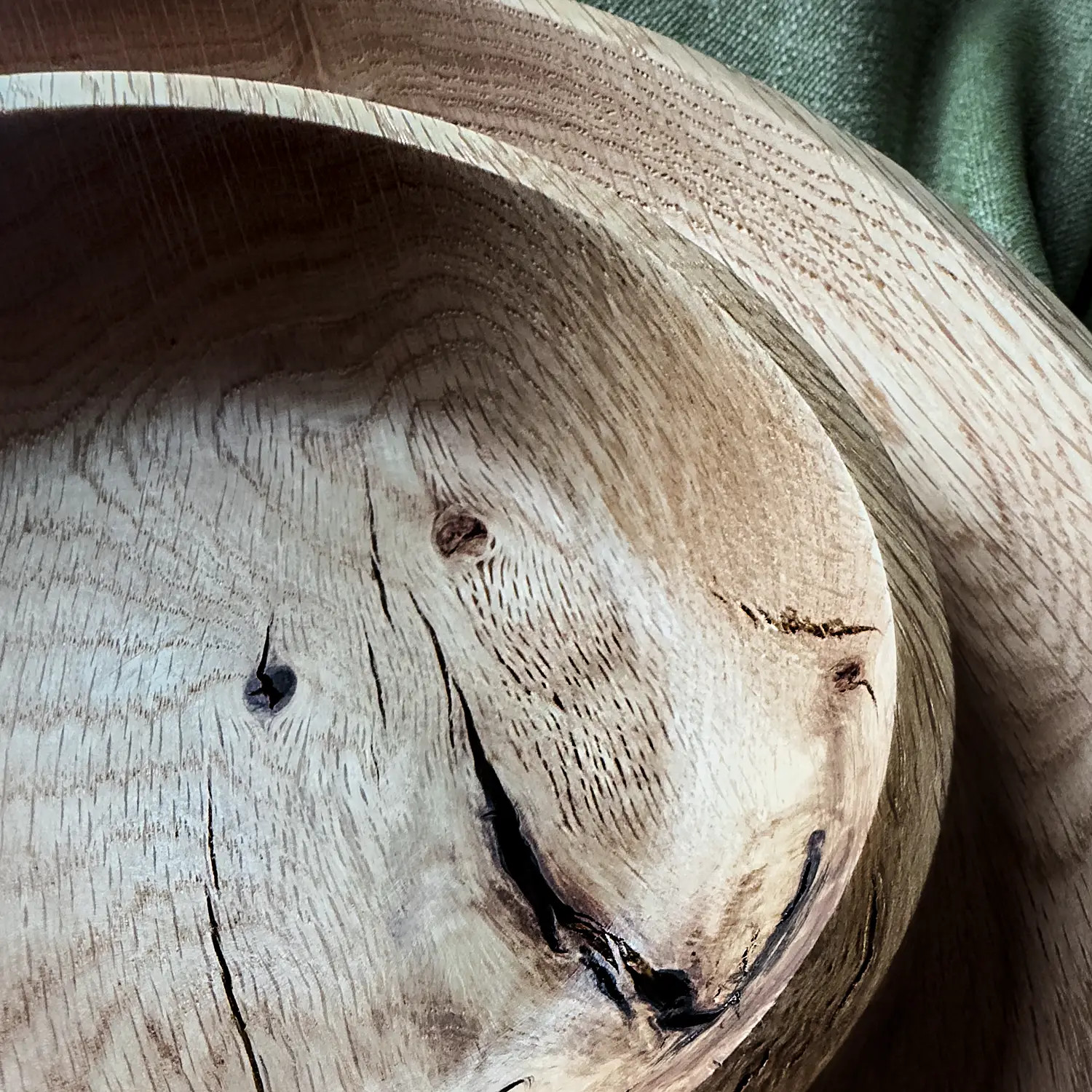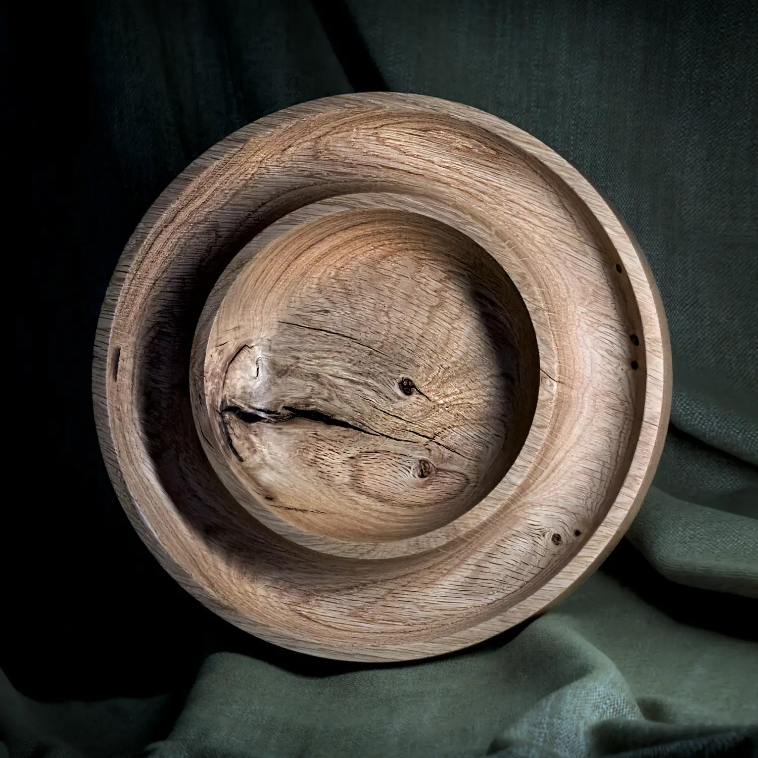 Kokořínský dub nikdy nezklame. A když vybereš kus s vylomenou větví, který sis šetřil pro něco naprosto unikátního, narodí se tahle nádherná mísa v míse.