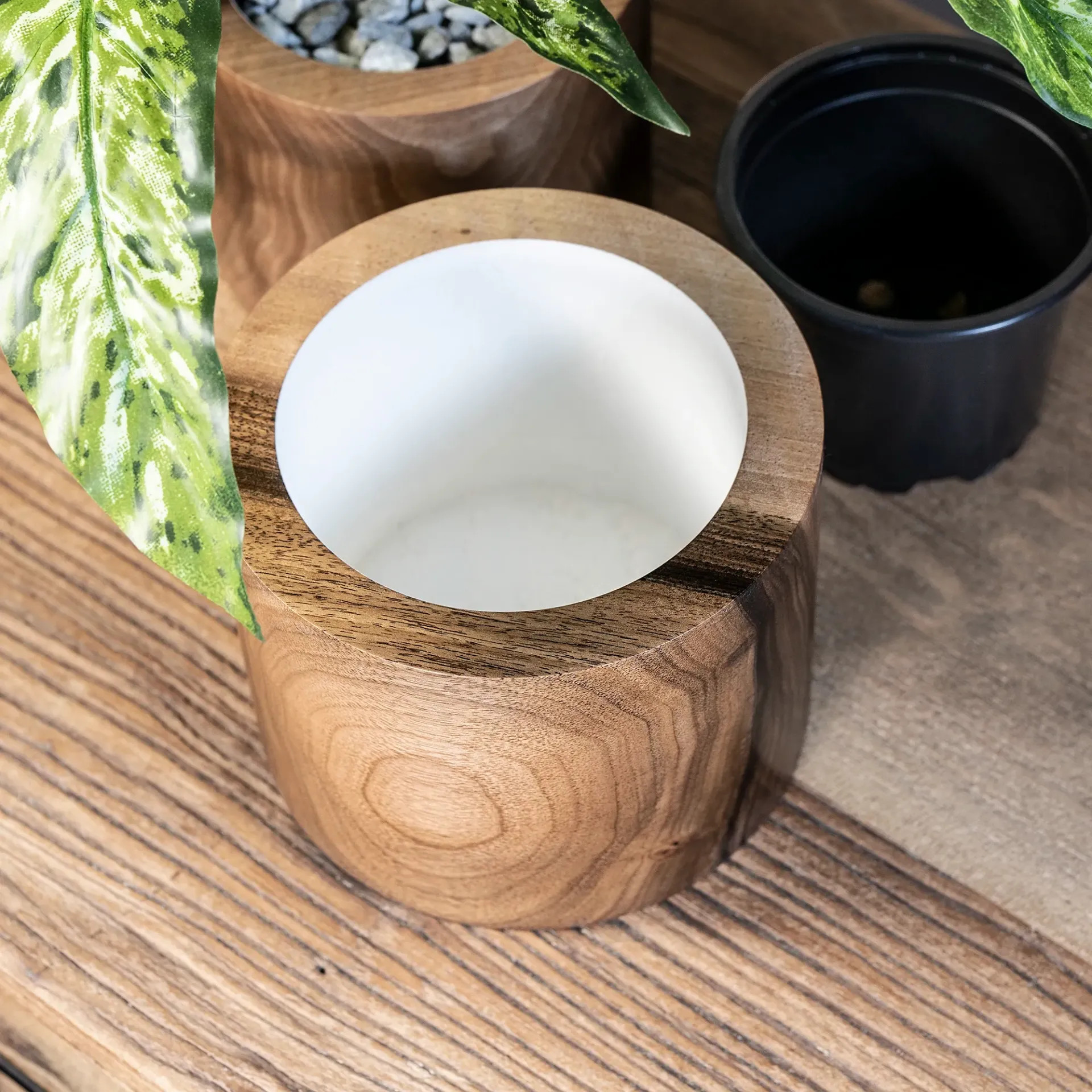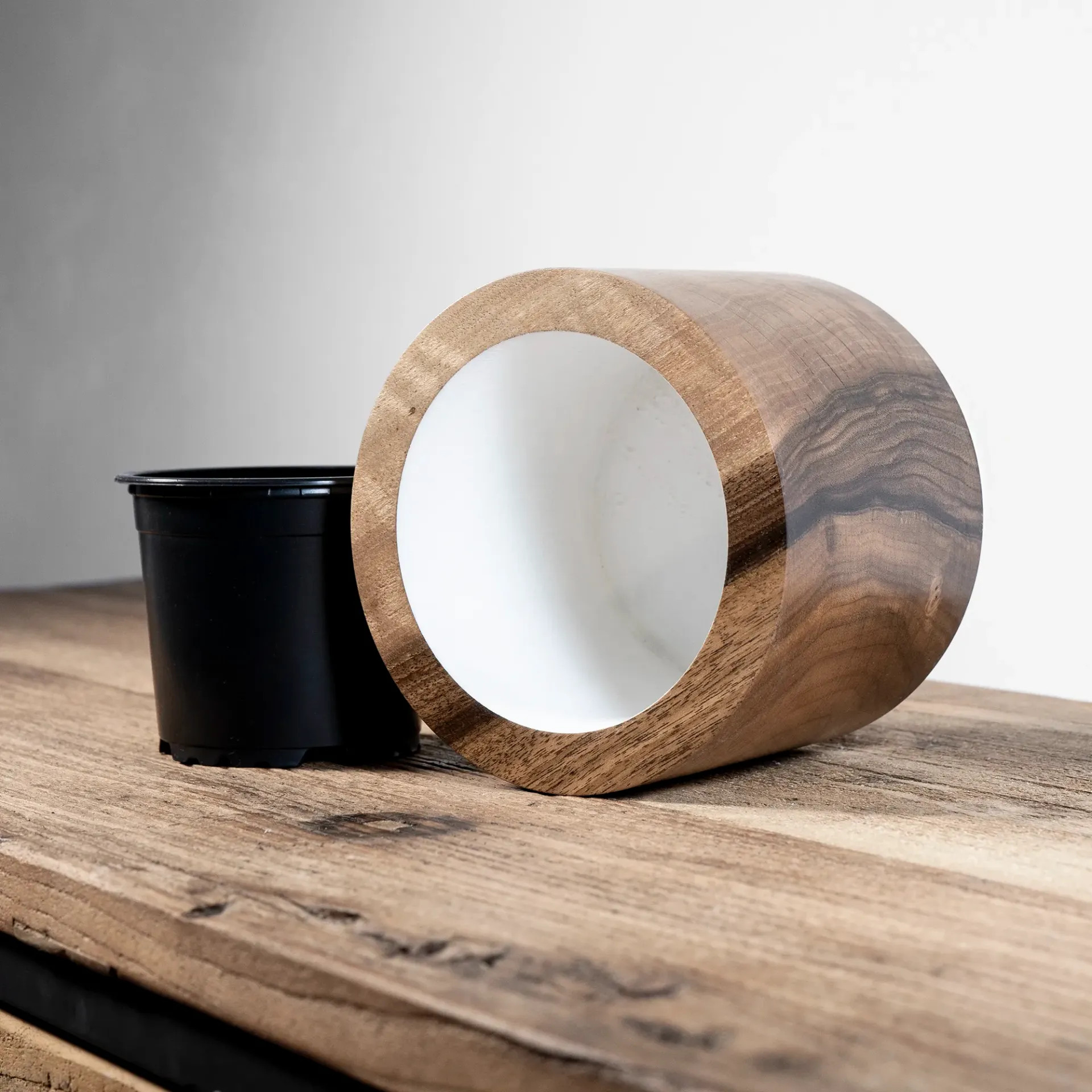 Ručně soustružený květináč z ořechového dřeva, ve kterém se kresba letokruhů přelévá jako tichá řeka. Každý přechod barvy, každý jemně vlnící se detail je otiskem času, během kterého dřevo stromu po dlouhá léta budovalo svůj nezaměnitelný charakter.