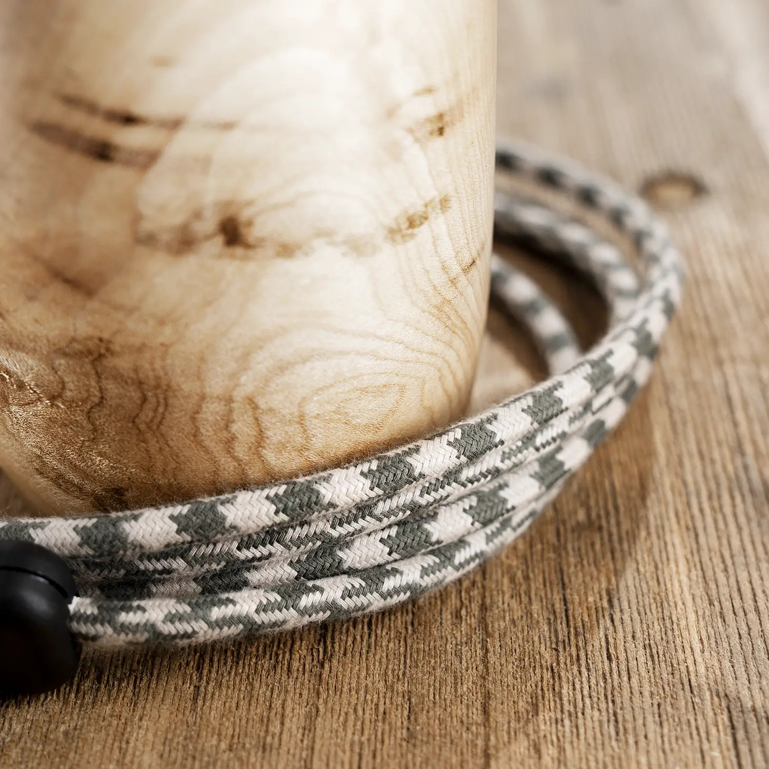 Pro akcentování naturálního vzhledu je tělo Tonky doplněné textilním retro kabelem opředeným přírodním lnem a bavlnou v barvě tymiánu a smetany. Černé doplňky, mosazná kabelová průchodka s jištěním proti vytržení a designová úsporná LED žárovka jsou pak už jen samozřejmostí.