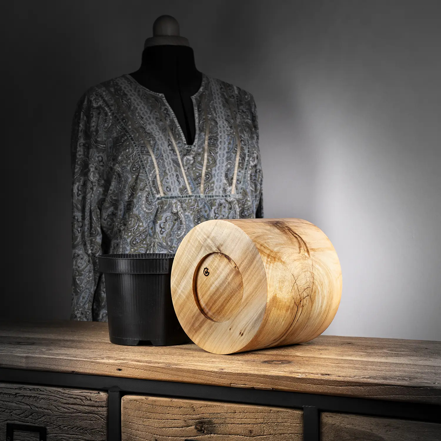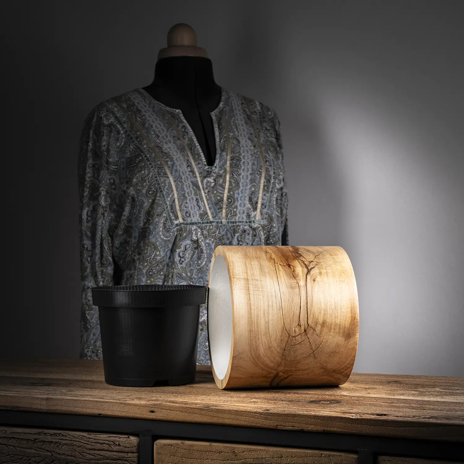 Získat takové dřevo není jednoduché. Pár kousků starého, nádherně vykresleného jasanu jsem měl uložených deset let. Navíc před tím ještě pomalu vysychaly ve stodole u souseda. Z toho největšího teď vznikl tenhle impozantní designový květináč.