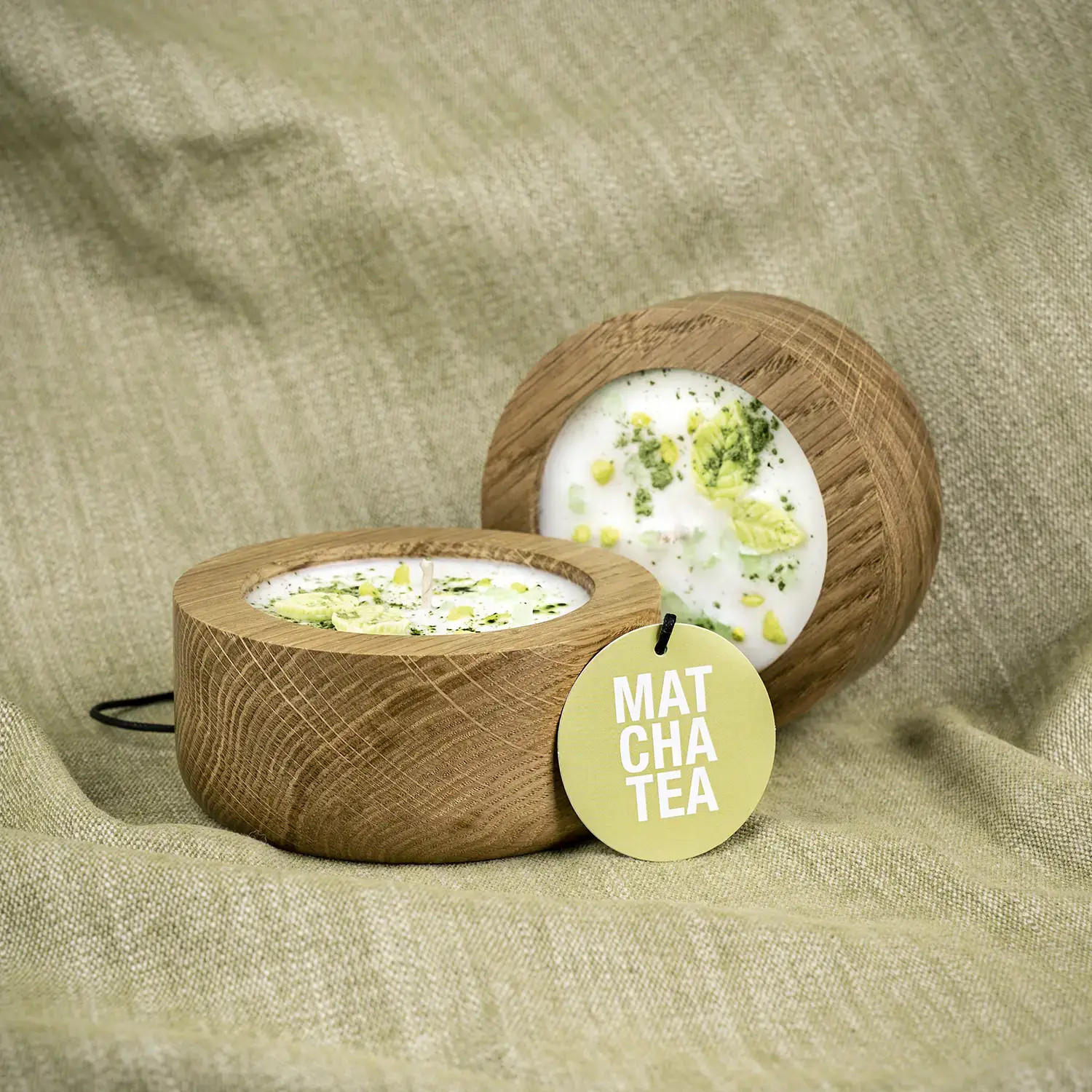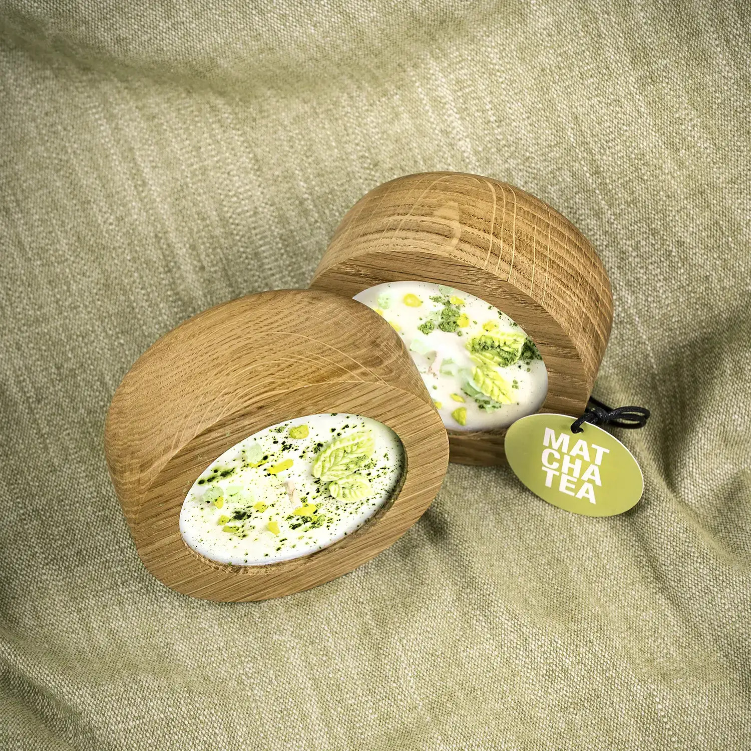 Pastvou pro oči je pak i přírodní dekorace solnými krystaly a pravou matchou. Celá tahle smyslová krása je zalita do ručně soustruženého dřevěného korpusu z dubového dřeva z mého milovaného kokořínského kraje.